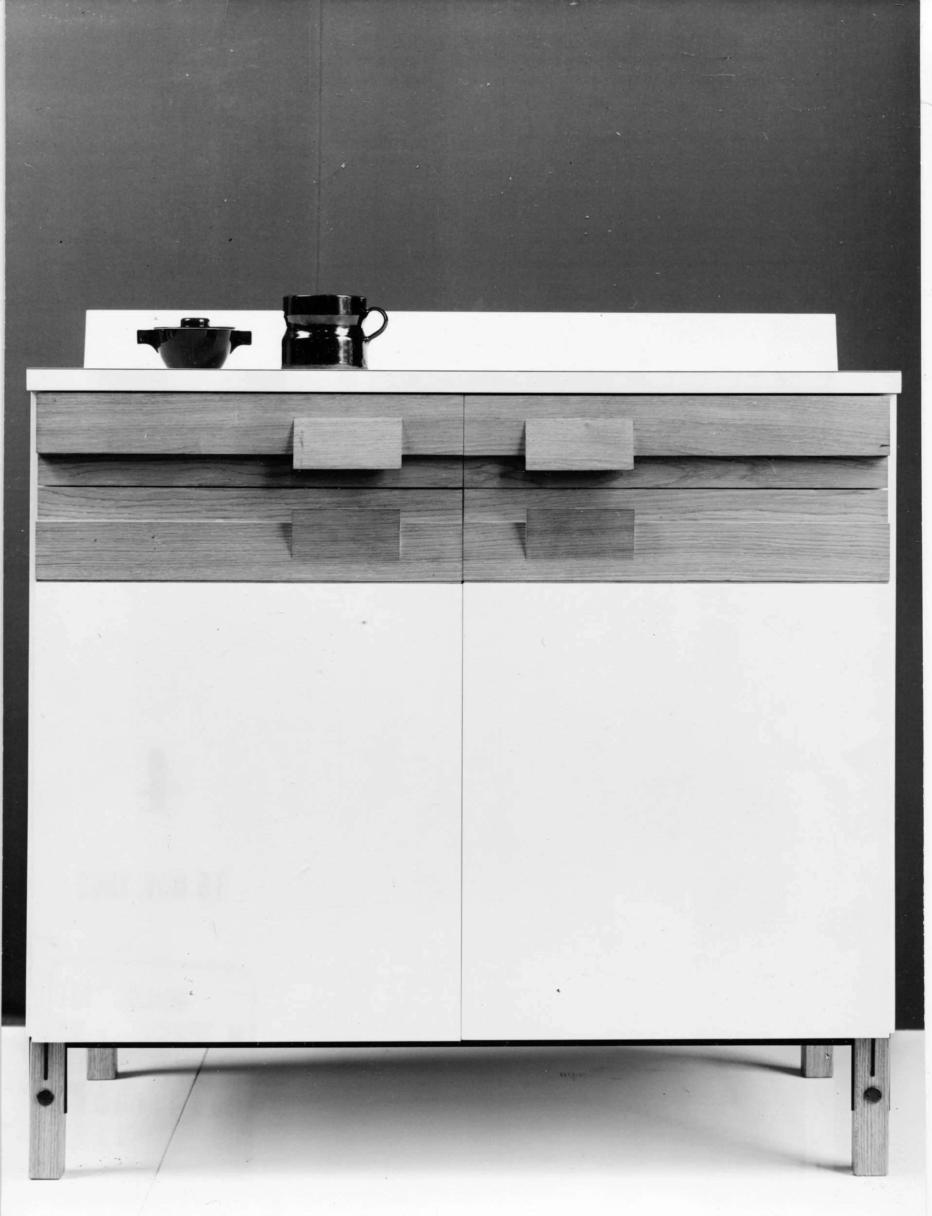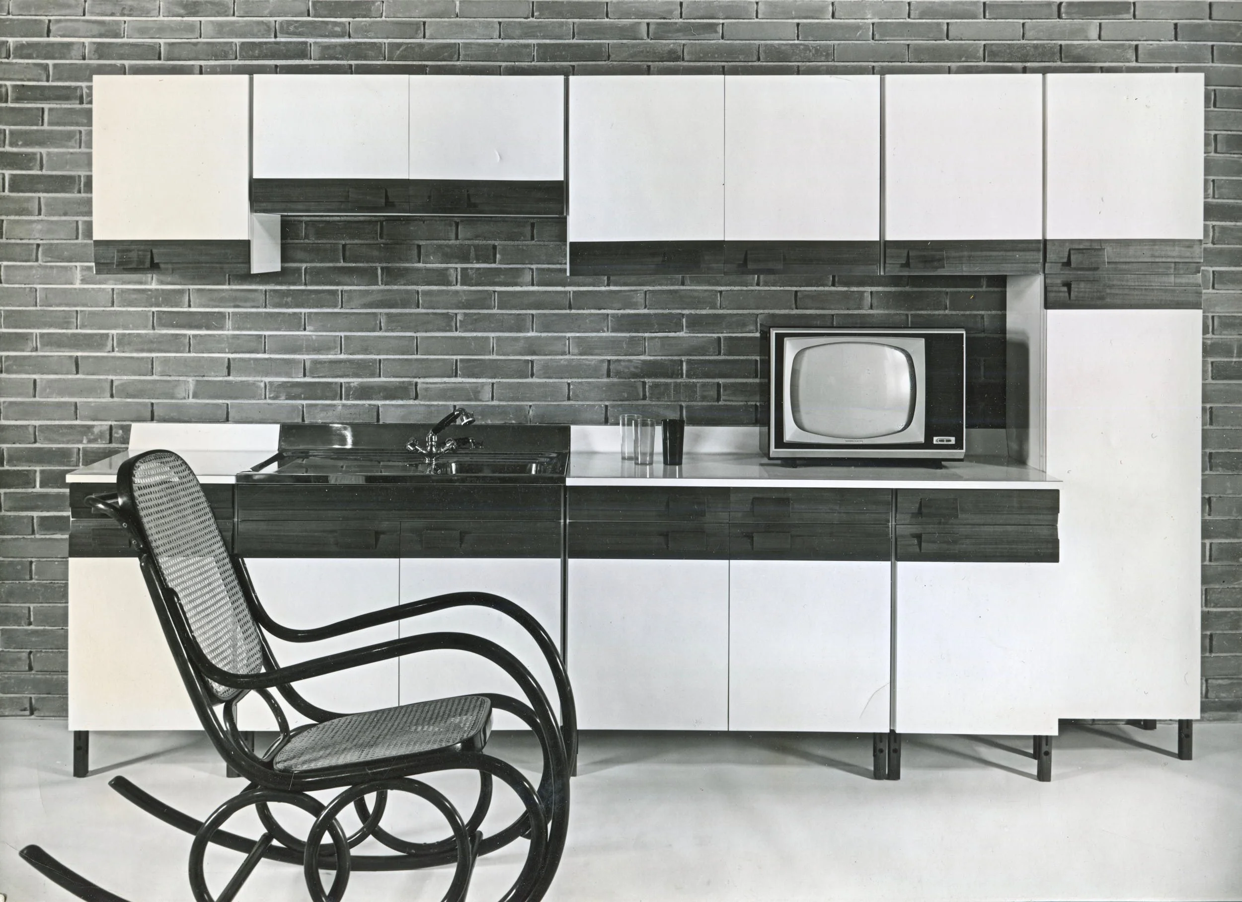 L’opera di maggiore risalto di Gian Casè nel campo del design è stata la cucina componibile Boffi T12 premiata con la medaglia d’argento alla XII Triennale di Milano nel 1960. L’immagine di repertorio evidenzia le caratteristiche più innovative di questa cucina – le eleganti componenti in legno naturale e i primi elettrodomestici da incasso – che ne decretarono l’eccezionale successo di mercato. La T12, considerata l’archetipo delle cucine italiane degli anni Sessanta, è rimasta in produzione fino alla metà della decade successiva. / Gian Casè's most prominent work in the field of design was the Boffi T12 modular kitchen awarded with the silver medal at the XII Milan Triennale in 1960. The archive image highlights the most innovative features of this kitchen - the elegant components in exposed natural wood and the first built-in appliances - which made it an exceptional market success. The T12, considered the archetype of the Italian kitchens of the sixties, remained in production until the mid-1970s.
