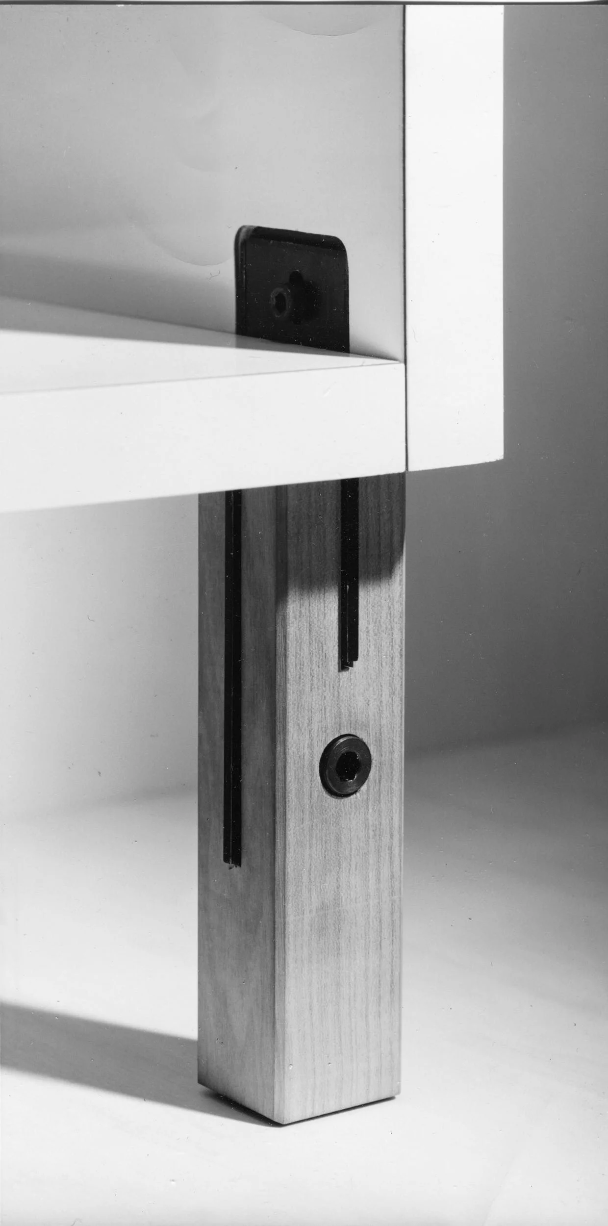 Un dettaglio che sottolinea la classe della cucina T12 è il piedino in legno massello, con un sistema di regolazione a eccentrici che non aveva precedenti nel settore. / A detail that underlines the class of the T12 kitchen is the solid wood plinth, with an eccentric adjustment system that was unprecedented in the sector.